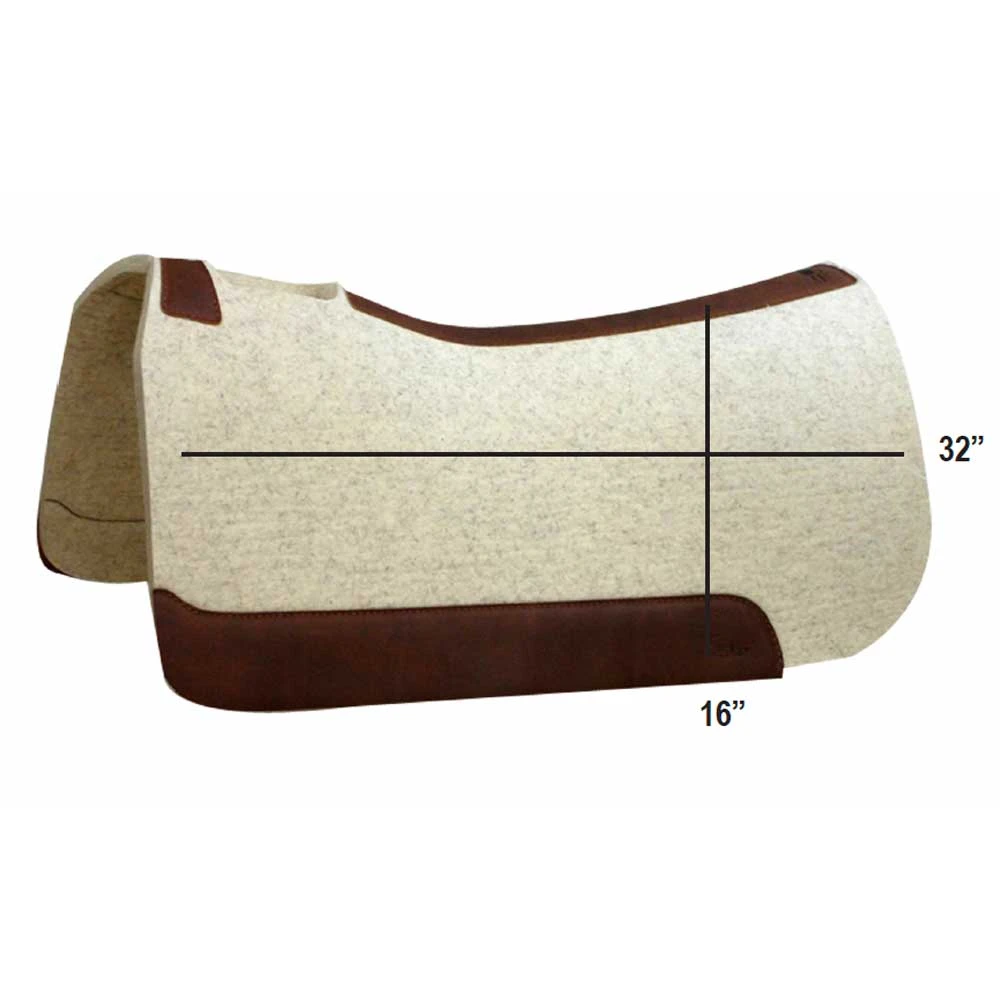 The Performer 5 Star Saddle Pad is our full skirted pad. It is a great pad for Ropers, Cutters, Reiners, Trail Riders, and is great for Larger Skirted Saddles. The back is slightly rounded to make room for the hip. The 100% pure virgin wool felt wicks away moisture, cleans up easily and stabilizes your saddle with limited cinching. Wear leathers provide protection and durability. Hand-made in the USA!