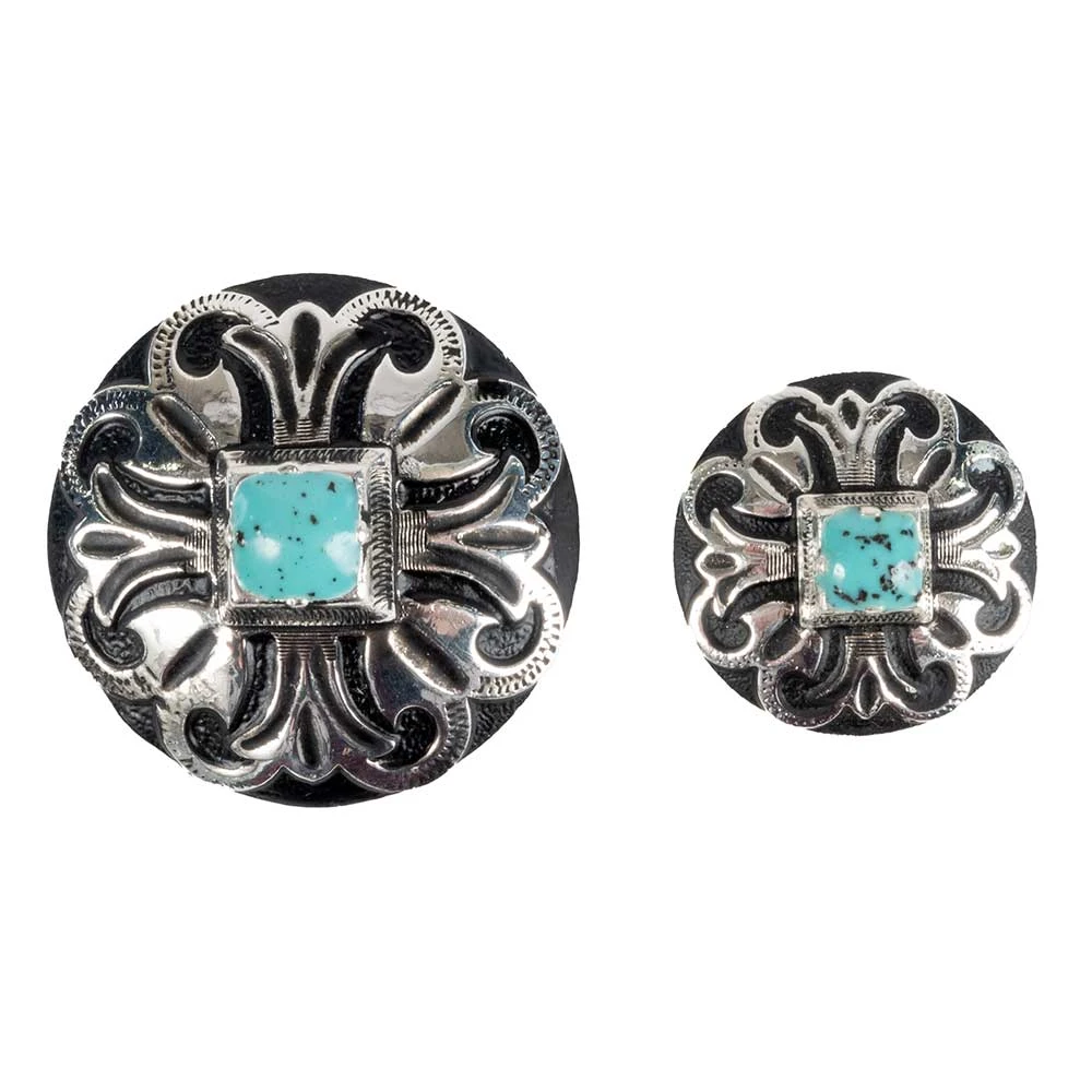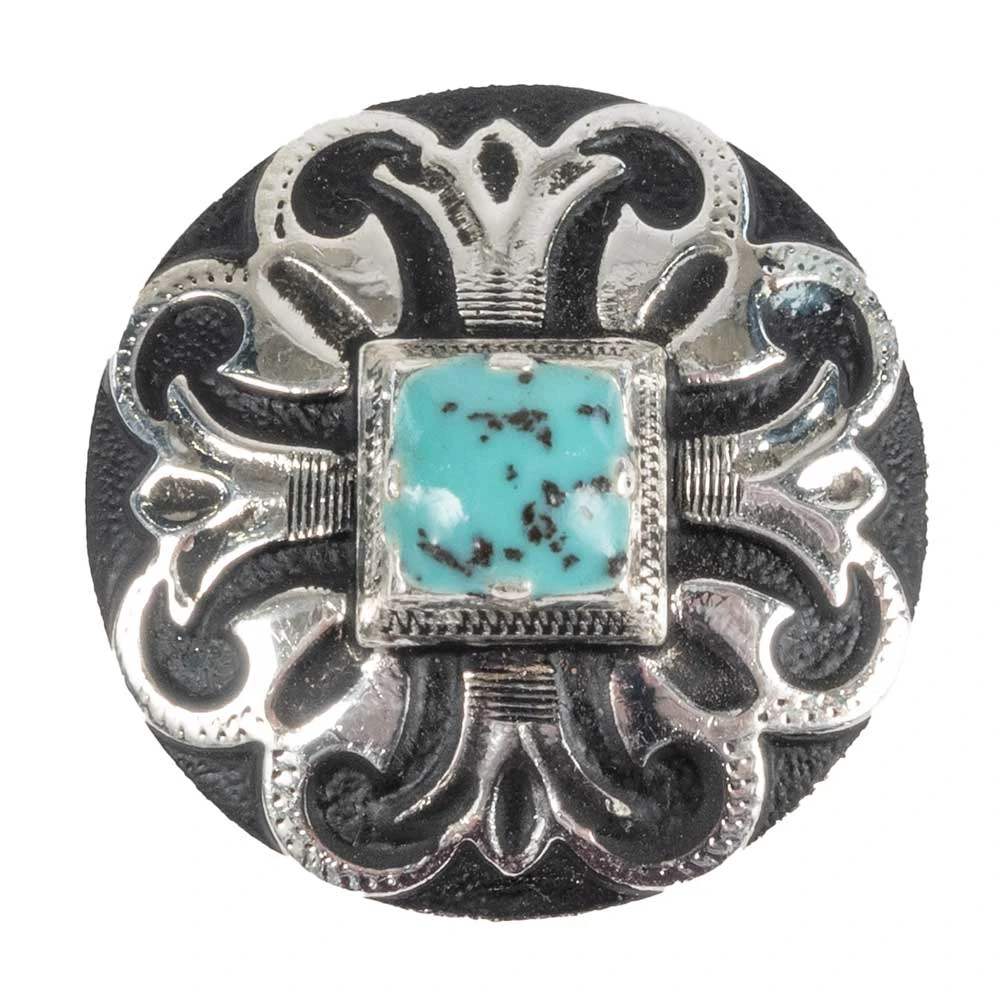 Black & Silver Concho with Turquoise Stone