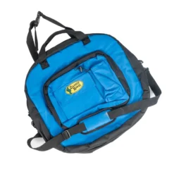Our On the Go Rope Bag features two backpack-style straps and two carrying handles. This bag is perfect for carrying up to 9 ropes and additional personal items. It features a large front compartment with three dividers and a small back compartment with a separate storage area. The front of the bag features a roomy zippered pocket, as well as a separate pocket with a hook and loop closure. It measures approximately 21” tall X 23” wide X 10 ¾” deep.