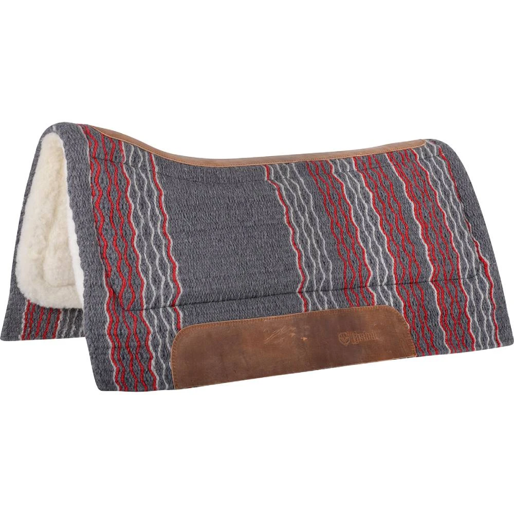 Looking for a saddle pad that will look great both in the show ring, or out on the trail, and last a long time? Look no further. Cashel’s Blanket Top Performance Pad is made of ¾” pressed felt with a high-quality merino fleece bottom and multicolored blanket wool top options. The moisture-wicking fleece bottom helps to distribute pressure and impact evenly across the horse’s back when performing everyday riding maneuvers. Its unique contour shape is built into the structure giving it the capability to follow a horse natural confirmation and still remain pliable, soft, and conforming. This allows it to be ridden on a wide range of horses. A pad with great eye appeal and the ability to provide protection and comfort to your horse at an affordable price. Distressed leather wear leathers.
