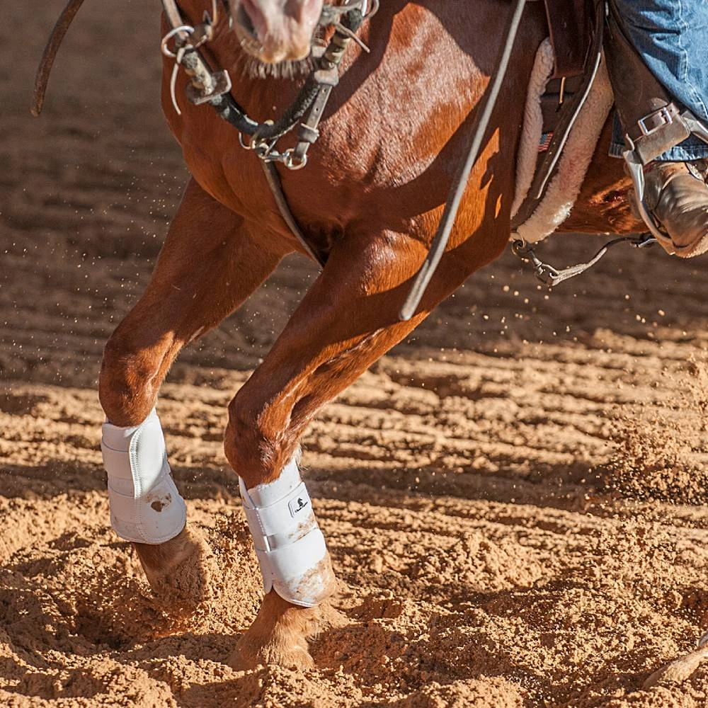 AirWave provides full, even support for the show arena in a cool, breathable design that is user-friendly. The perforated foam body actively draws heat away from the leg while a tough, flexible mesh covering adds protection and durability, greatly extending the life of the boot. AirWaves clean, ergonomic fit is attractive without sacrificing protection.