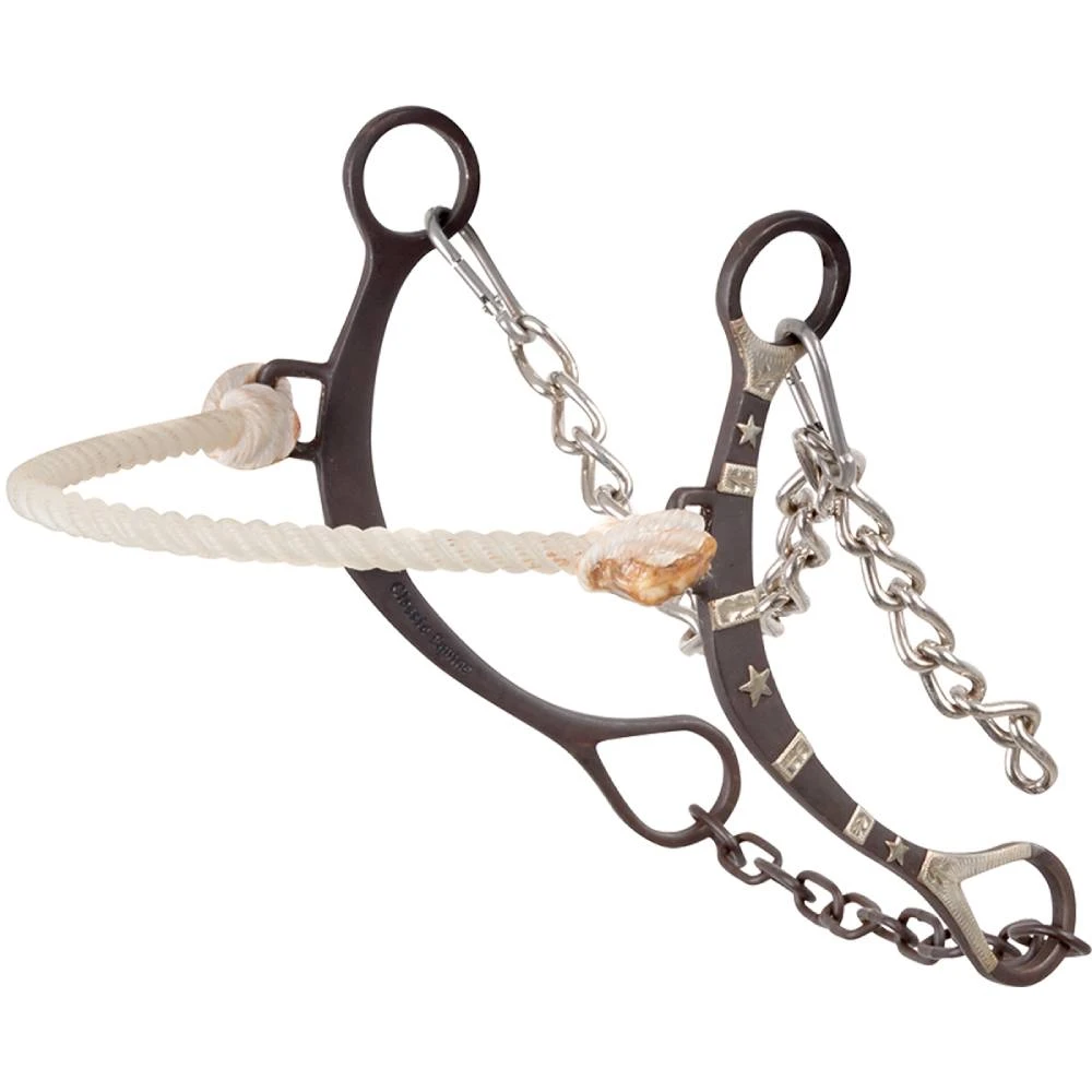 The Bozo Sidepull is a replica of the headgear World Champion barrel racer Kristie Peterson used on Bozo. It allows your horse to be comfortable enough to really run in, yet gives you enough control to rate and regulate the run. It helps correct a horse that is over bending, and is more for the finished horse than for training. 6-3/4″ shank, original. 6″ shank, short shank.