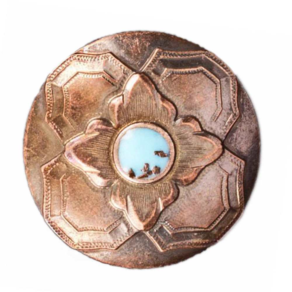 Copper Concho with Turquoise Dot and a Chicago Screw back. Option for wood screw adapter.