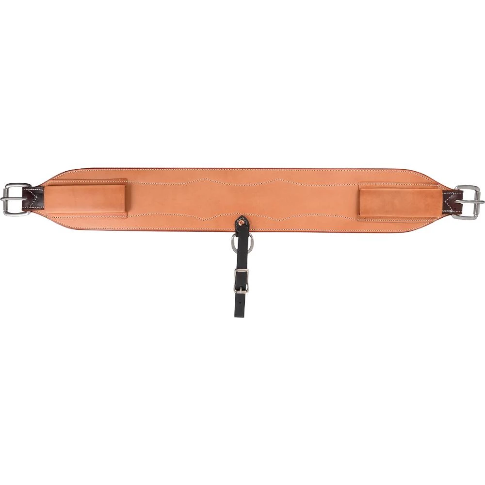 All Martin Saddlery flank cinches have biothane keepers for longevity. The contoured ends will not interfere with spurring. They are made of heavy saddle skirting with a latigo liner and sewn together with heavy nylon thread. Then they are hand rubbed and the edges are dyed. Roller buckles are secured with copper rivets.