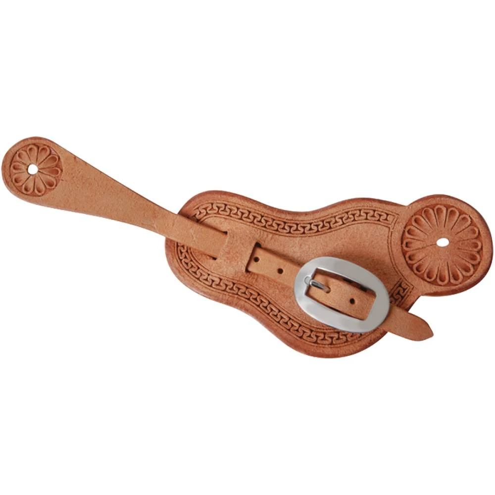 Martin Saddlery Buckaroo spur straps with San Carlos bordered with cart buckle, available in natural and chocolate. Skirting and roughout options.Â