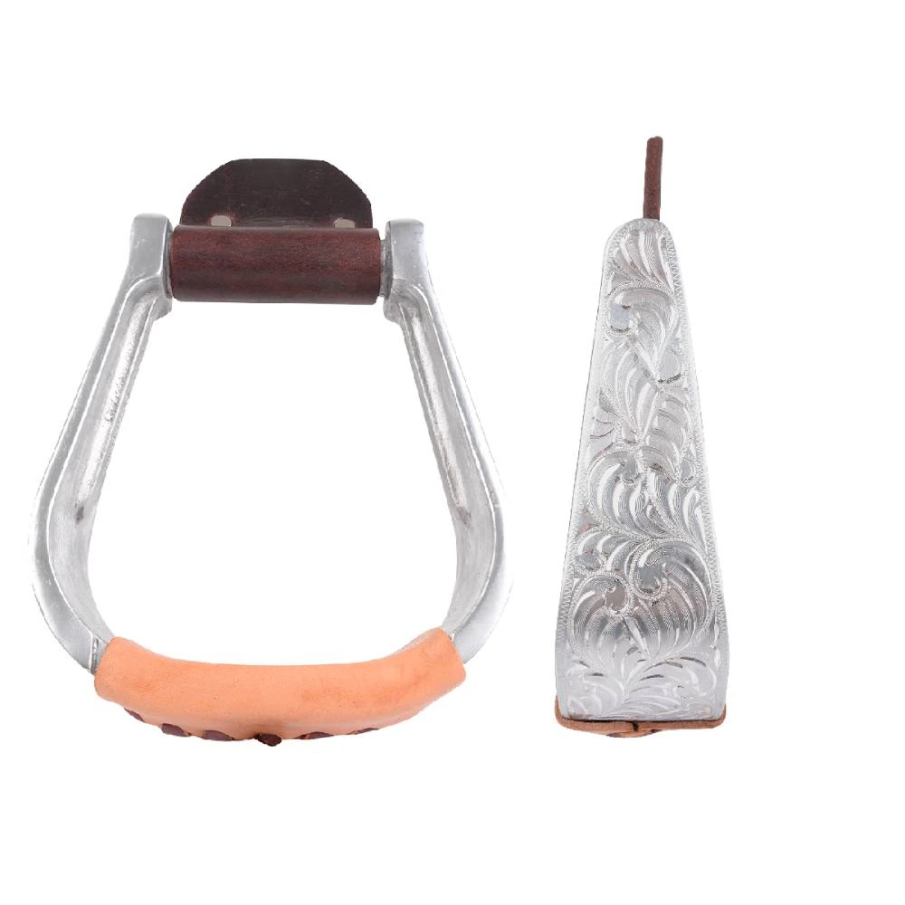 Martin Saddlery Hand Engraved Aluminum Stirrup with Leather Tread.