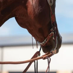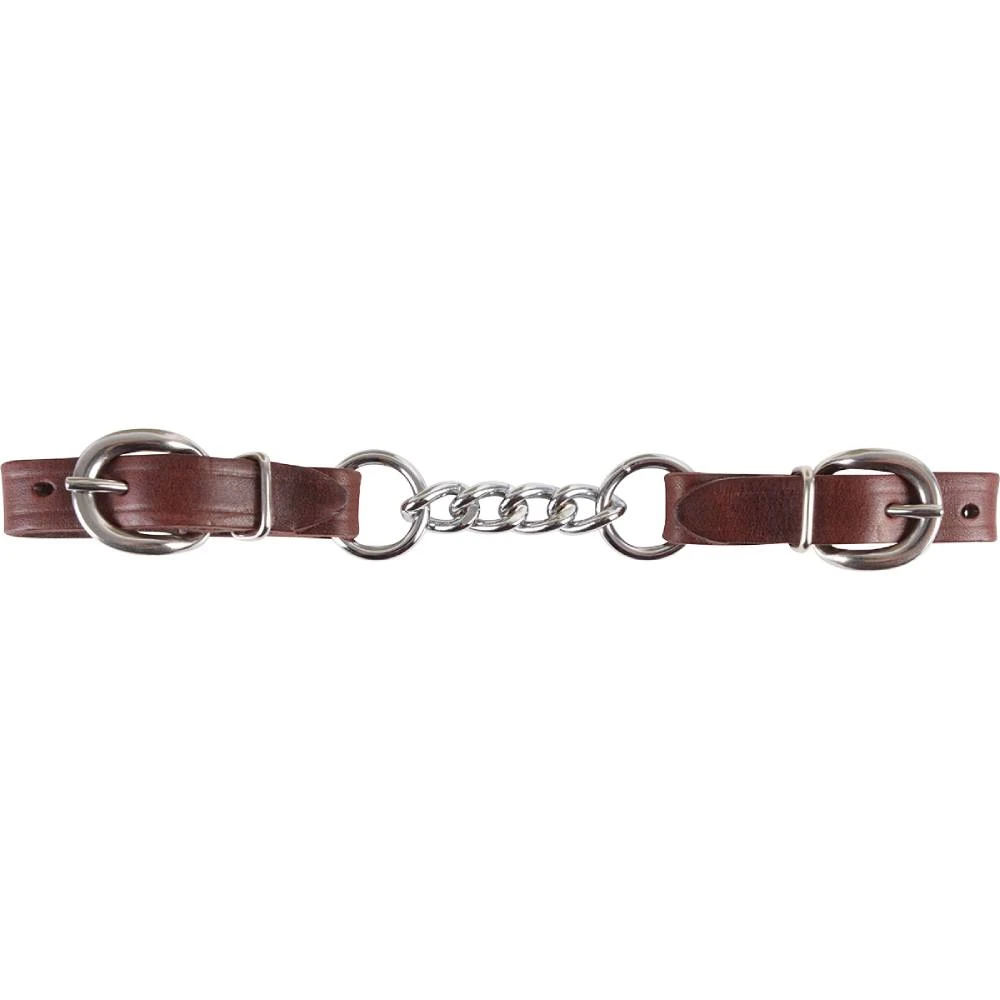 Chain curb strap made with latigo leather and stainless steel chain.Â