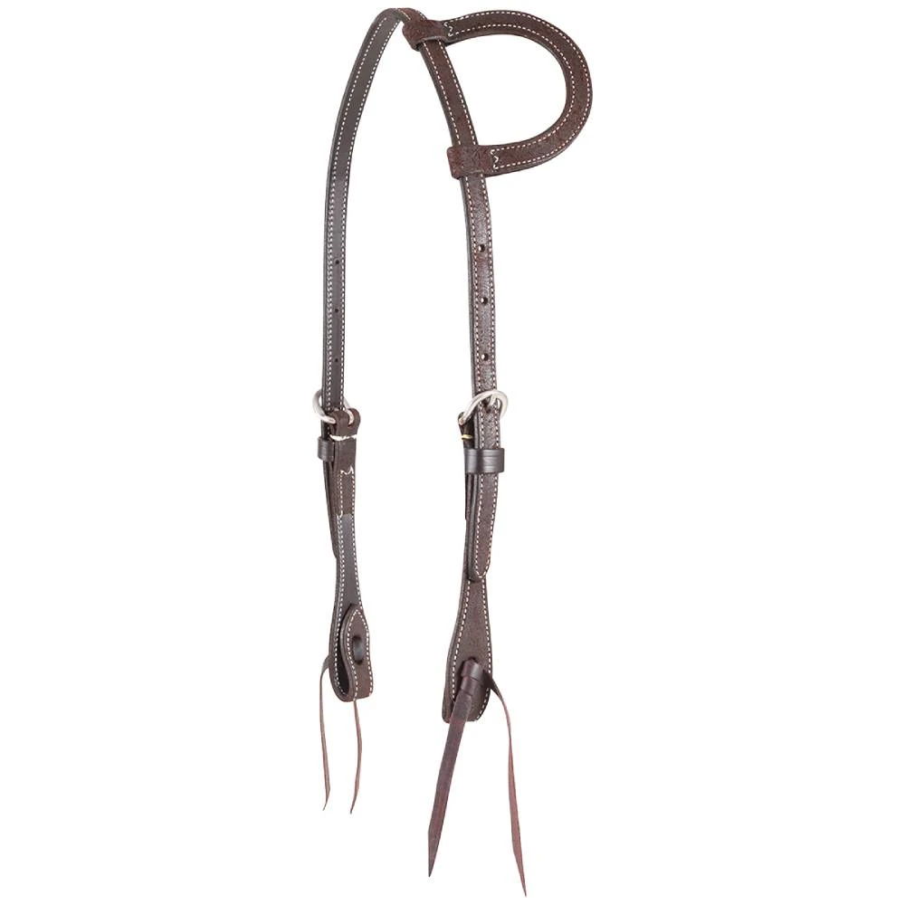 Natural, Chestnut, or Chocolate roughout skirting leather with stainless steel buckles and bit ties.