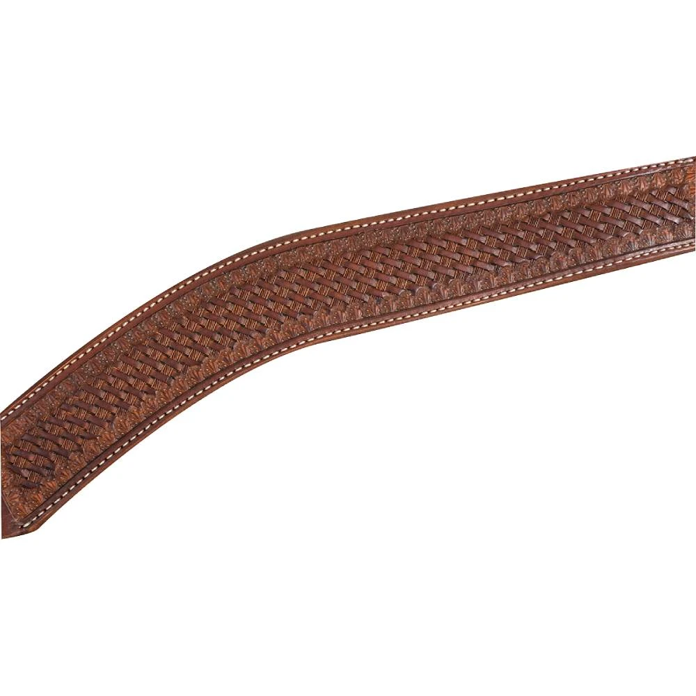 Natural skirting leather with weathered antiquing and Mini Basket stamp. 2″ Wide.