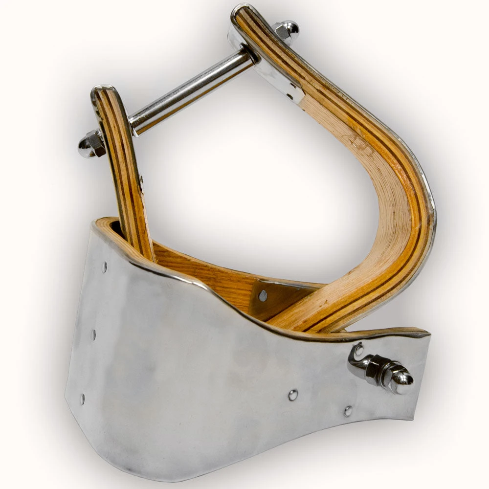 Β Monel bell stirrups feature a stainless steel cover and a wooden structure.