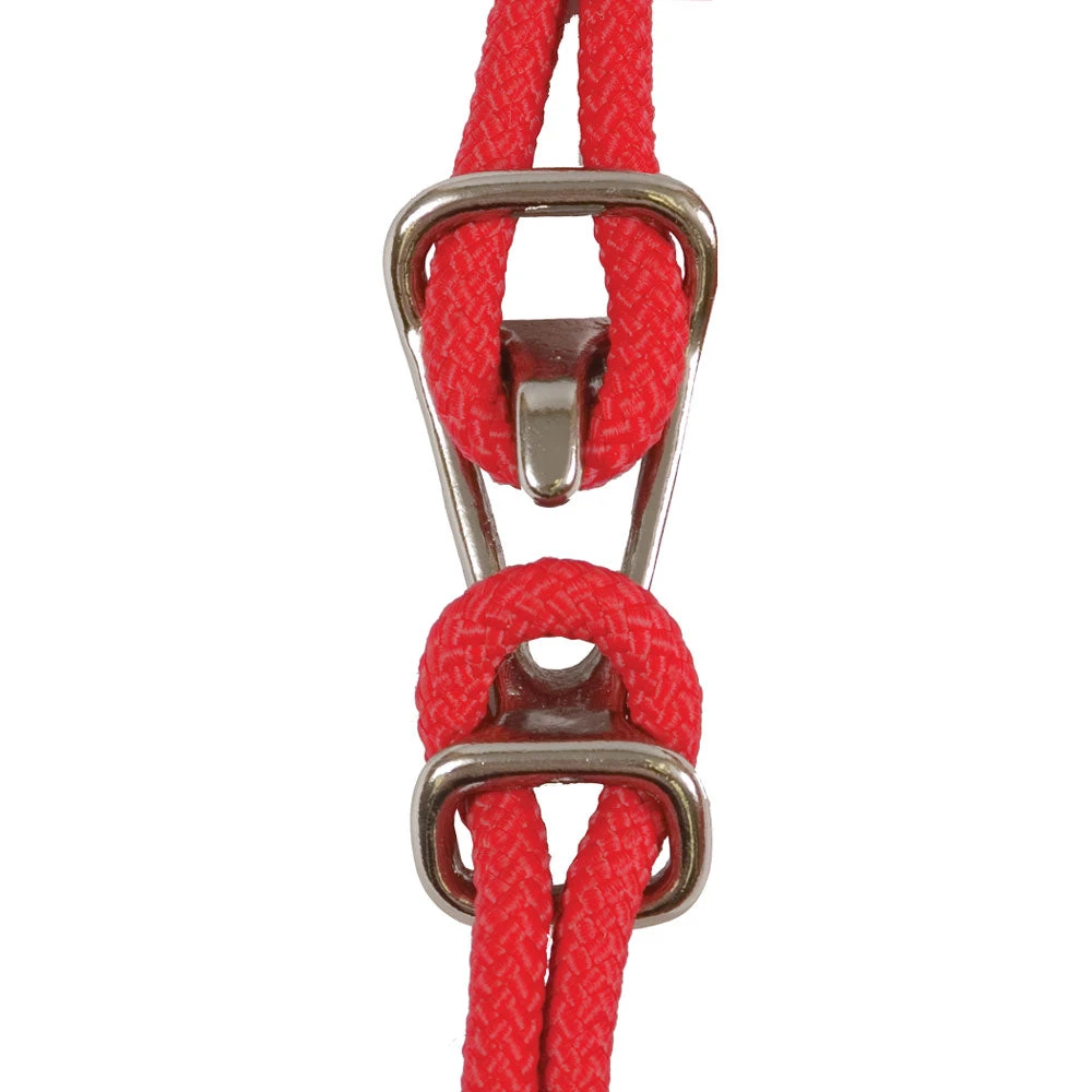 Nickel Plated Easy On clip, Rope Nose, Adjust Knots For One Perfect Fit. Made From Diamond Braided Rot Resistant Rope, 8′ Lead. Colors Available: Red, Blue, & Black.