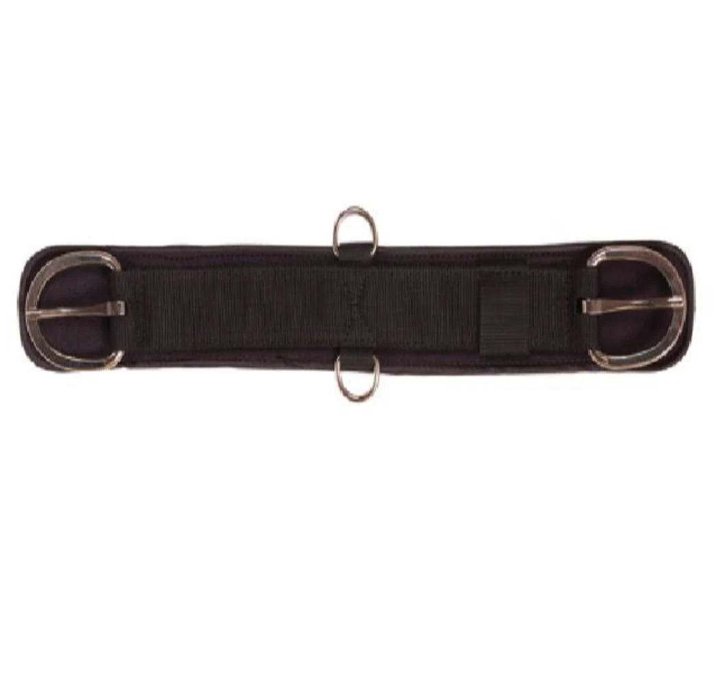 Straight black nylon cinch with PVC backing and nickel plated hardware.