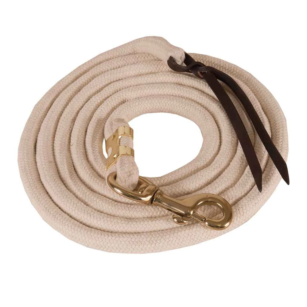Long wearing Pima cotton lead with bolt snap. Brass plated snap and leather popper end. Pima Cotton is considered to be the superior blend of cotton and is extremely durable.
