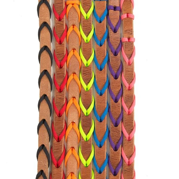 Herman Oak Leather barrel reins. Laced with paracord. Available in 5/8″ or 3/4″. Made in U.S.A.