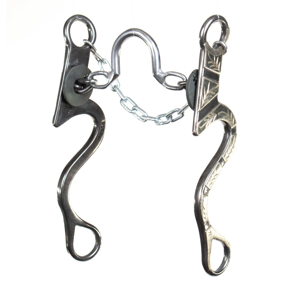 Patrick Smith chain high port bit and chain curb. Longer shank with engraved silver plates on cheeks.