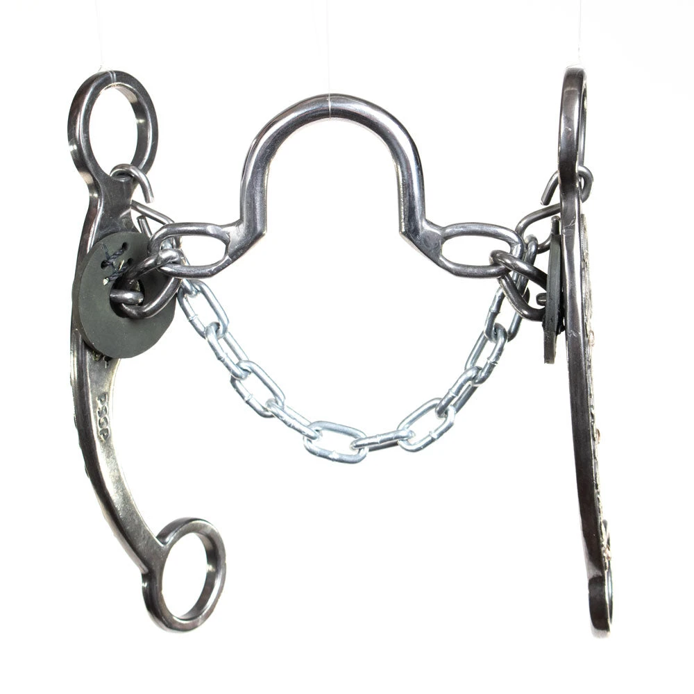 Port chain mouth and curb chain. Shorter shanks with mounted scrollwork on the cheeks.