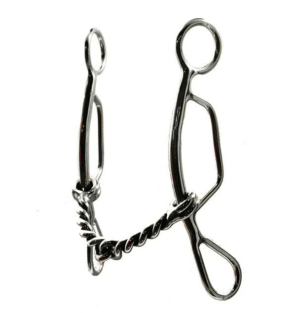 Gag bit with a twisted wire snaffle in a 4.5″ mouthpiece. Great bit for many purposes.