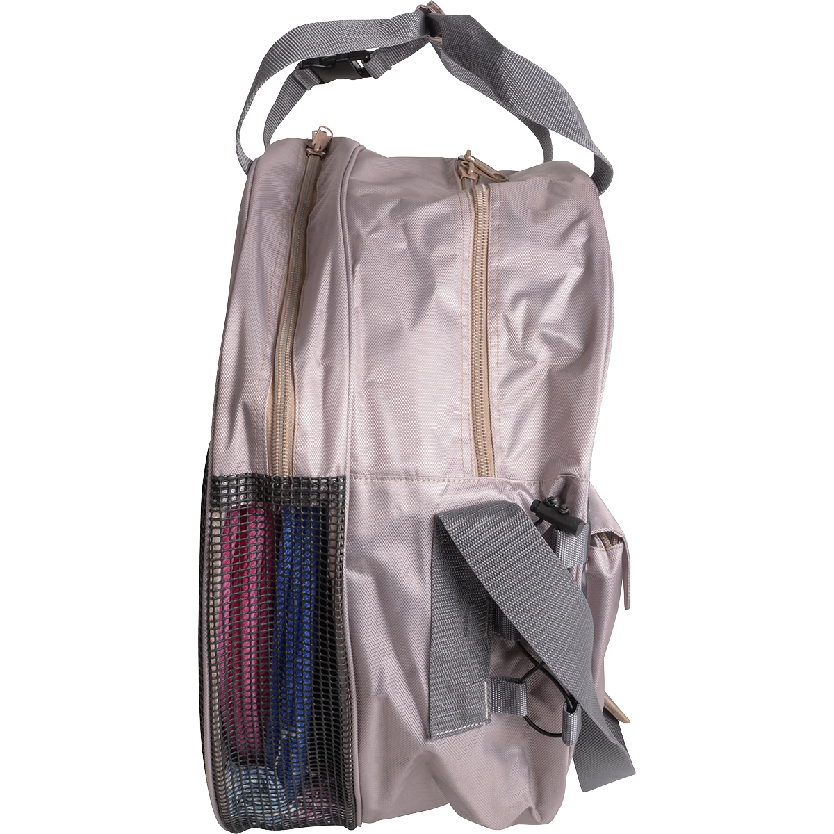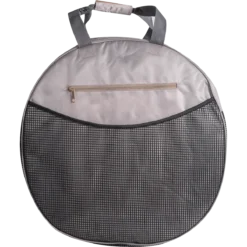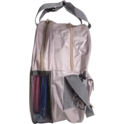 - Two main padded compartments keep ropes tidy, one with a mesh bottom to allow dirt to escape. Mesh pocket behind holds dirty ropes, boots, ect. More pockets for ample storage, and straps that buckle for easy attachment to the fence.