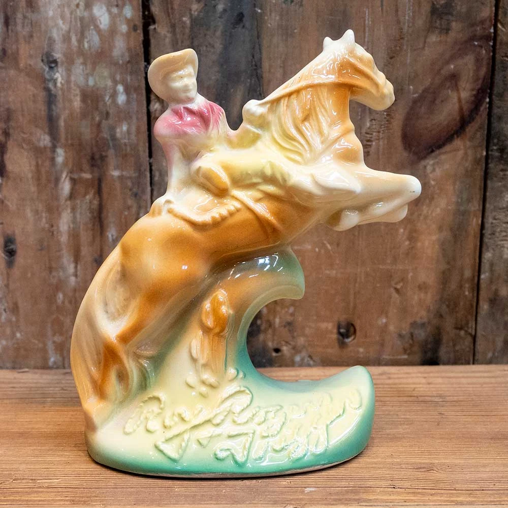 Roy Rogers riding Trigger ceramic piggy bank, has no bottom stopper. Dating from the 1950’s.