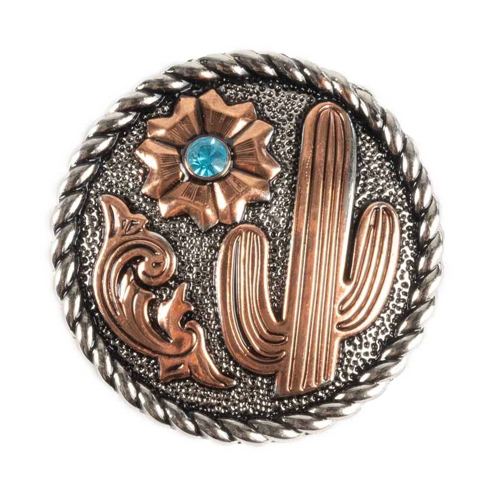 Antique Cactus and Flower Concho with Rope Edge and Blue Stone