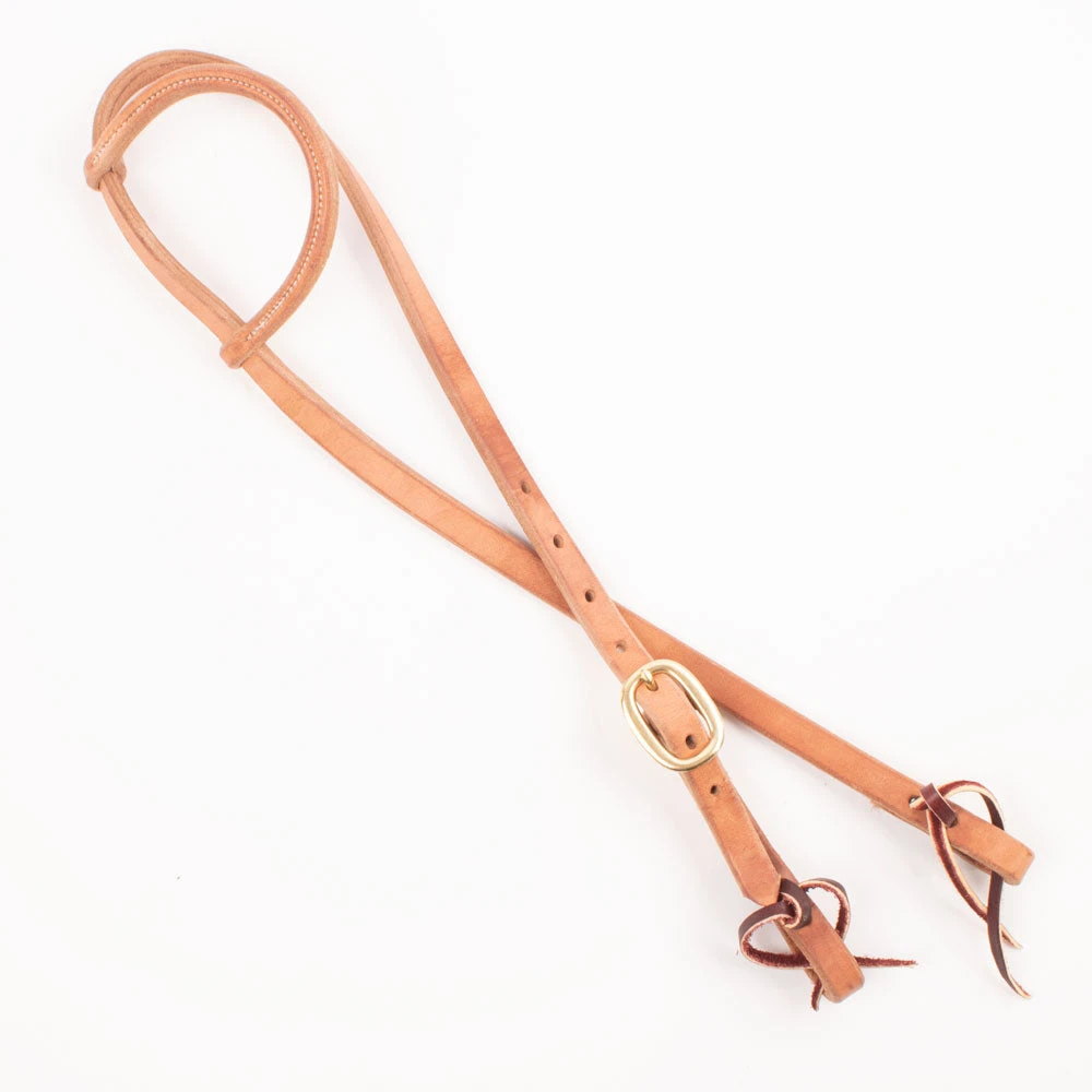 Teskey’s one ear headstall features harness leather. Features brass plated hardware, single buckle, and leather tie bit ends. 5/8″ wide. Available in Light Oil or Dark Oil.