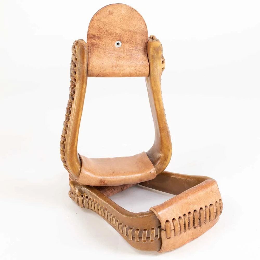 Teskey’s Youth Rawhide Stirrups come in either 2″ or 3″. The neck is 3″. These stirrups have leather tread and rawhide lacing.