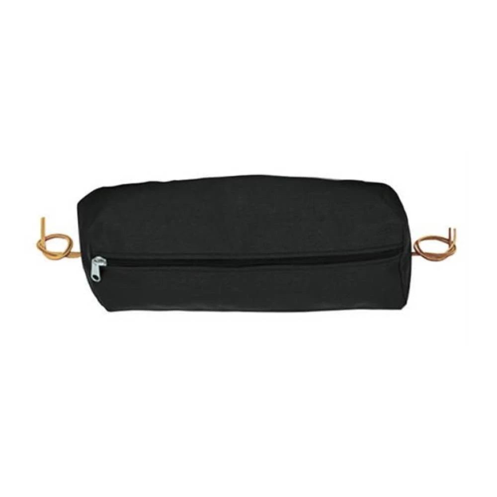 Great for extra lead ropes, rain gear and more. Quickly attach to the saddle with sewn-in dees and tie strings. Nickel plated hardware.