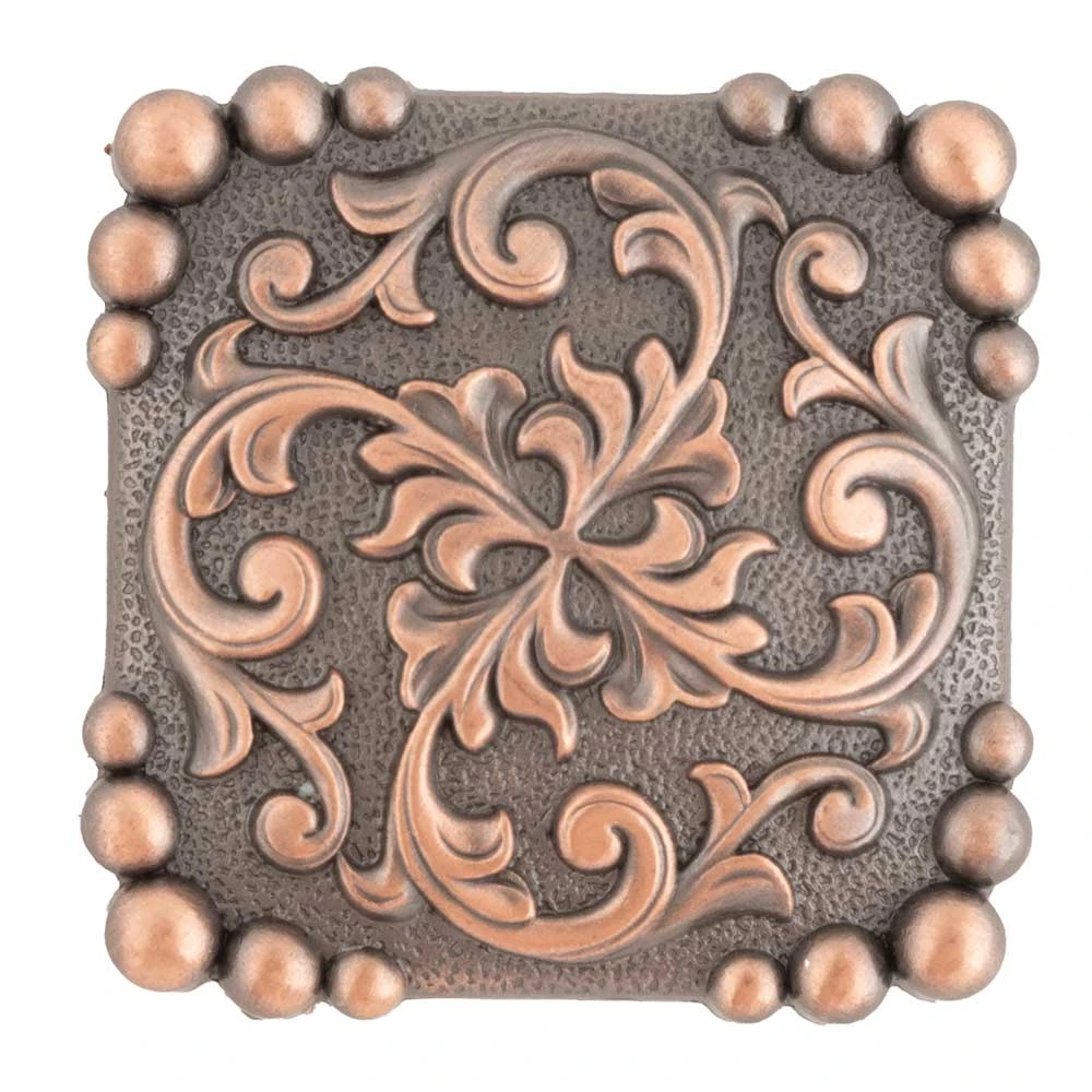 Antique Copper Square Concho with a Chicago screw back. Option for wood screw adapter available.